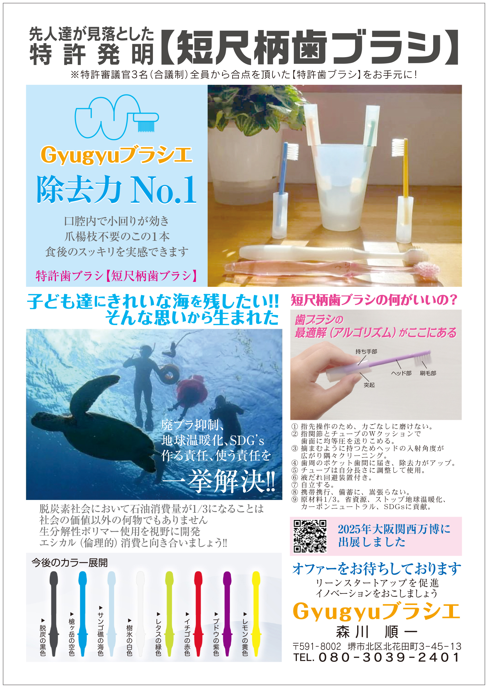 ここに短尺柄歯ブラシ効果と環境配慮型設計の2大要素をデザインし皆様の認識と情動(そだね‼)を注ぎ、満たすことがイノベーションになります。
